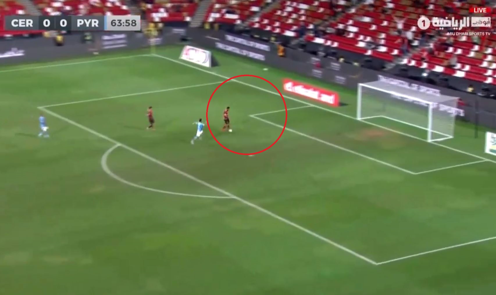 وانفرد ريان بمرمى بيراميدز مستفيداً من خطأ خروج الحارس أحمد ميهوب وزميله المدافع أسامة جلال ليجد نفسه أمام المرمى الخالي تماماً من الحارس لكنه سدد بغرابة شديدة في القائم وسط حالة ذهول من المراقبين.