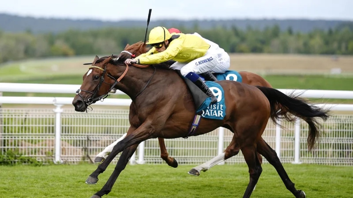وعرف الفارس كالوم رودريغيز كيفية قيادة المهرة “وردة” للحفاظ على قدراتها خلال المراحل الأولى للسباق، قبل إطلاق العنان لها مع دخول 400 متر الأخيرة، متجاوزةً منافساتها نحو الصدارة، وقطع خط النهاية بالمركز الأول بزمن بلغ ثلاث دقائق وأربع ثواني وثمانية أجزاء من الثانية، بفارق ثلاثة أرباع الطول عن صاحبة المركز الثاني المهرة البريطانية “دانيلي” بإشراف المدربين جون وثيدي غوسدن، وقيادة الفارس جيمس دويل.