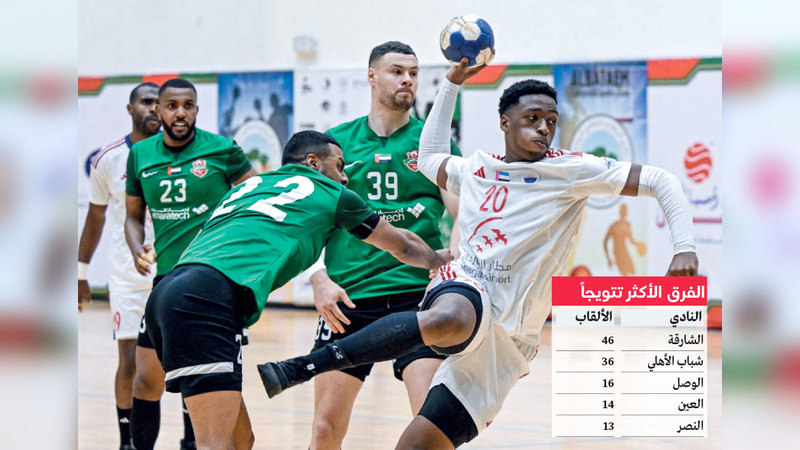 واصل فريق رجال الشارقة لكرة اليد سلسلة ألقابه المتتالية في المسابقات المحلية، محققاً أرقاماً قياسية غير مسبوقة بتاريخ اللعبة، بعد فوزه أول من أمس، بلقبه الثامن توالياً في بطولة الدوري، والـ18 في تاريخ المسابقة، ليصل بذلك إلى البطولة رقم 46 على صعيد مشاركاته المحلية والخارجية، كأكثر فرق الدولة تتويجاً في مسابقات كرة اليد.