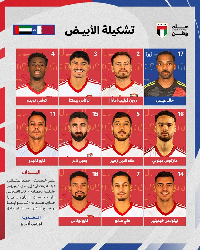 أجرى مدرب المنتخب الوطني لكرة القدم، الروماني، أولاريو كوزمين، أربع تعديلات على التشكيلة التي ستواجه قطر مساء اليوم في المواجهة الحاسمة من تصفيات الملحق الأسيوي المؤهل لكأس العالم 2026.