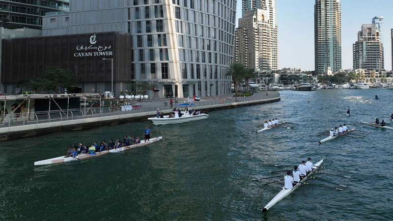 • «المسيرة» جرت في قناة دبي المائية، وتهدف إلى التوعية بالمحافظة على البيئة.