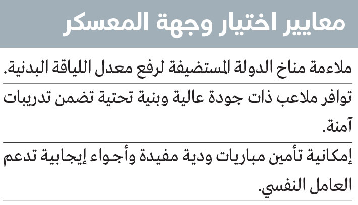 ركّزت ستة أندية على إقامة معسكراتها في مصر وتركيا، استناداً إلى تجارب ناجحة سابقة، وإلى إمكانية خوض مباريات ودية متكافئة، خصوصاً أن العديد من الأندية العربية تقيم معسكراتها هناك، مثل الرائد والاتفاق والفيصلي من السعودية، والمحرق البحريني، وشبيبة القبائل الجزائري، إضافة إلى أندية تركية وأوروبية.