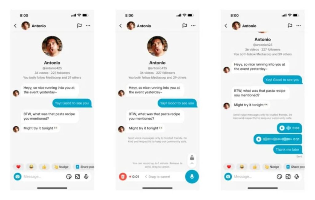 تيك توك تضيف ميزة الرسائل الصوتية ومشاركة الصور إلى المحادثات الخاصة