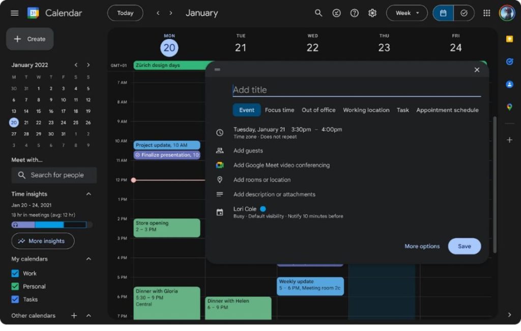 جوجل تحدث واجهة تقويمها على الويب بتصميم عصري ووضعٍ داكن