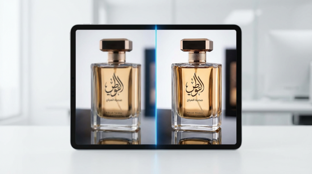 | صورة منتج ضبابية | طلب صورة جديدة من المورد (يستغرق أياماً) | زيادة حدة الصورة وإصلاح التفاصيل فوراً |