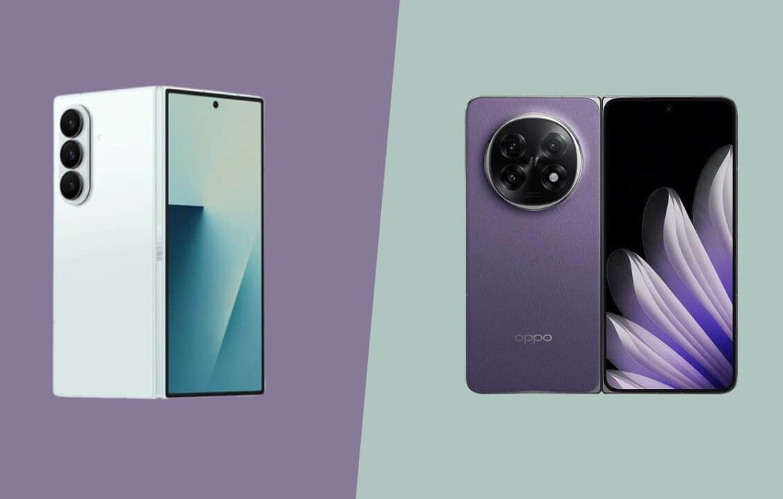يُعد هاتفا Galaxy Z Fold7 و Oppo Find N5 من أحدث وأبرز الهواتف القابلة للطي أفقيًا، وكلا الهاتفين يتمتعان بالنحافة؛ إذ يبلغ سُمك كل واحد منهما 4.2 ملم دون طي، و 8.9 ملم عند الطي، لكنهما مختلفان في العديد من الجوانب، مثل: مواصفات الشاشة، وقدرات الكاميرات، وعمر البطارية، وسرعة الشحن. إليك مقارنة شاملة بين الهاتفين …
