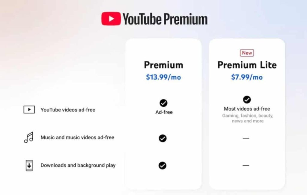 أعلنت يوتيوب طرح اشتراك جديد تحت اسم “بريميوم لايت Premium Lite“، يتيح للمستخدمين مشاهدة معظم مقاطع الفيديو دون إعلانات مقابل 8 دولارات شهريًا، وهو اشتراك أرخص مقارنةً باشتراك بريميوم الكامل الذي يبلغ سعره 14 دولارًا شهريًا. وأوضحت المنصة أن الاشتراك الجديد أصبح متاحًا في الولايات المتحدة، على أن يُطلق في أسواق تجريبية أخرى، مثل أستراليا …