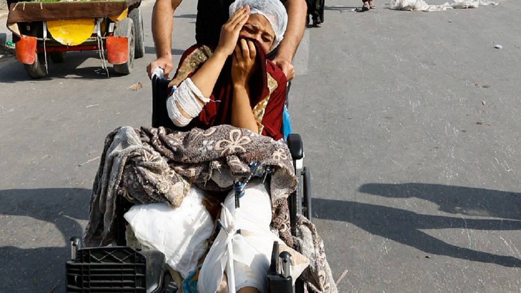 وقال يوسف مهنا الذي نزح من جباليا في شمال القطاع إلى خان يونس، لفرانس برس: “زوجتي مريضة، وأصبتُ بجروح مع ابنتي حين قُصف منزلٌ مجاور ودمّر منزلنا، ونحن محاصرون منذ 25 يوماً دون أكل ولا شرب ولا شيء”.