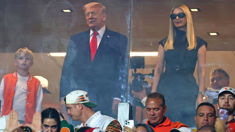 حضرت إيفانكا ترامب المباراة برفقة أطفالها الثلاثة وابنة شقيقها كاي، وظهرت وهي ترتدي نظاراتها الشمسية على الرغم من أن المباراة أقيمت في ملعب “هارد روك” المغلق. هذا المشهد لم يمر مرور الكرام، حيث لفت انتباه وسائل الإعلام والمحللين، خاصةً بعد الجدل الدائر حول استبعادها من العرض الأول لفيلم “ميلانيا”.