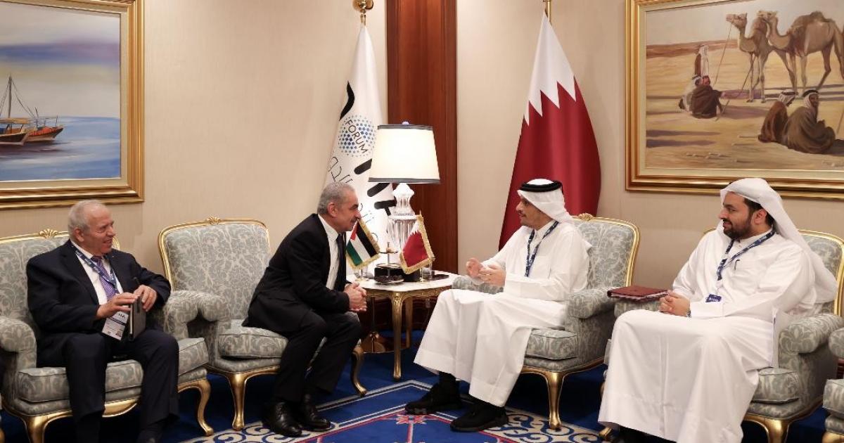 التقى رئيس الوزراء محمد اشتية مع رئيس مجلس الوزراء القطري، وزير الخارجية، الشيخ محمد بن عبد الرحمن بن جاسم آل ثاني، اليوم الأحد، على هامش منتدى الدوحة 2023.