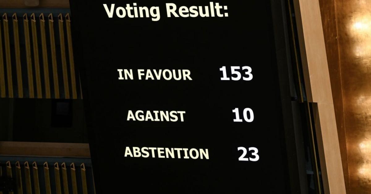 وصوّتت الهيئة التي تضمّ جميع الدول الأعضاء في الأمم المتّحدة وعددها 193، بأغلبية 153 صوتا لصالح القرار، أي أكثر من عدد الدول التي تؤيد عادة القرارات التي تدين روسيا بسبب غزوها لأوكرانيا (نحو 140 دولة).