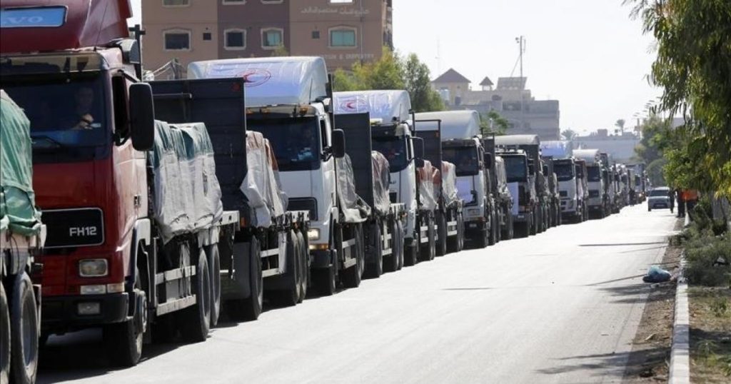 أعلن المتحدث باسم وكالة غوث وتشغيل اللاجئين الفلسطينيين ” الأونروا ” عدنان أبو حسنة، أن إسرائيل تمنع إدخال نحو 6,000 شاحنة كانت تنتظر على أبواب قطاع غزة ، تكفي لتأمين المواد الغذائية لسكان القطاع لمدة ستة أشهر، إلى جانب مئات الآلاف من الخيام ومستلزمات الإيواء الضرورية مع اقتراب فصل الشتاء.
