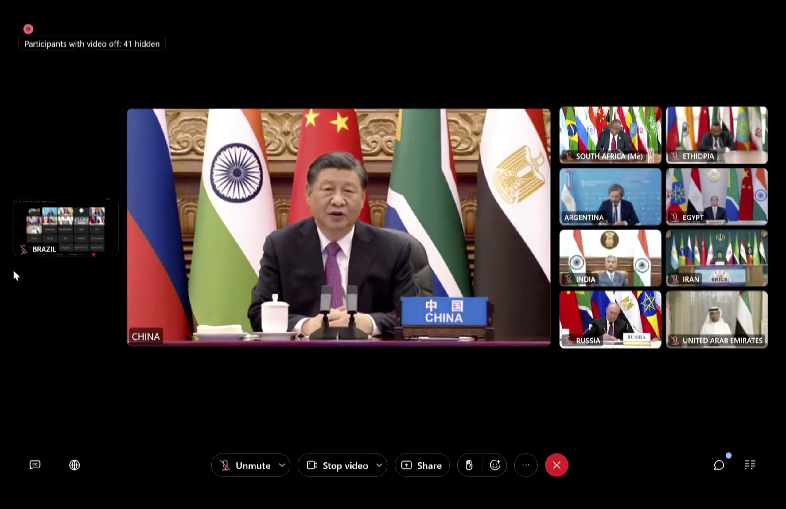 كما دعا الرئيس الصيني، في كلمته بقمة “بريكس” الافتراضية الاستثنائية حول القضية الفلسطينية الإسرائيلية، إلى “وقف جميع أعمال العنف والهجمات ضد المدنيين، وإطلاق سراح المدنيين المحتجزين، والعمل على منع فقدان المزيد من الأرواح وتجنيب السكان المزيد من المآسي”، وفقا لوكالة أنباء الصين الجديدة (شينخوا).