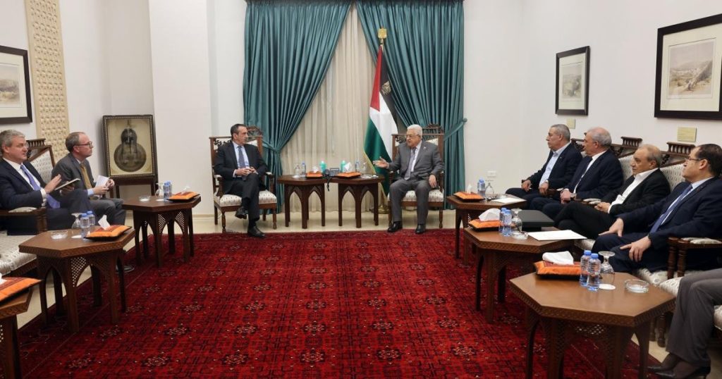 وأكد الرئيس، للمسؤول الأميركي، ضرورة التدخل الفوري للإدارة الأميركية، والضغط على حكومة الاحتلال الإسرائيلي لوقف عدوانها المتواصل على أبناء شعبنا في قطاع غزة، والذي يدفع ثمنه أبناء شعبنا العزل الذين يتعرضون لحرب إبادة غير مسبوقة، ذهب ضحيتها أكثر من 60 ألفاً من المدنيين والأطفال والنساء الشيوخ بين شهيد وجريح.