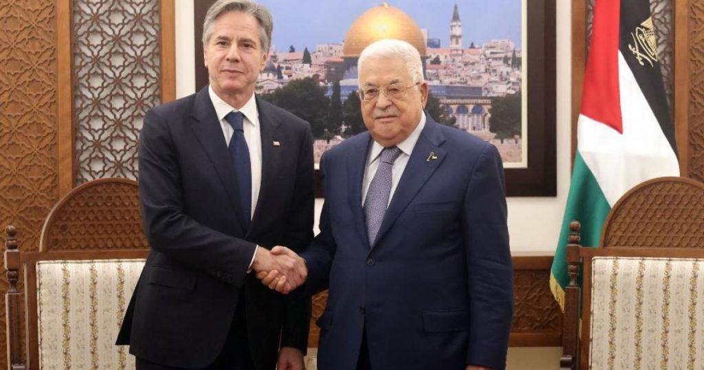 جاء ذلك خلال استقبال الرئيس عباس ، وزير الخارجية الأمريكي أنتوني بلينكن في مقر الرئاسة بمدينة رام الله .