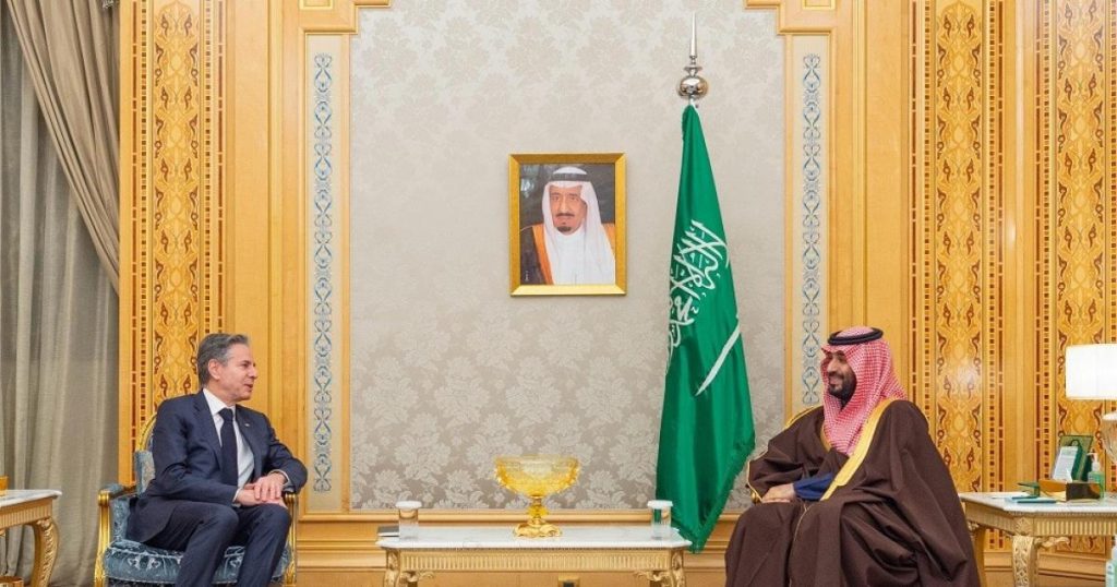 أصدرت وزارة الخارجية السعودية، ليلة الأربعاء، بيانًا فيما يتعلق بالمناقشات الجارية بين المملكة والولايات المتحدة الأمريكية بخصوص مسار السلام العربي – الإسرائيلي.