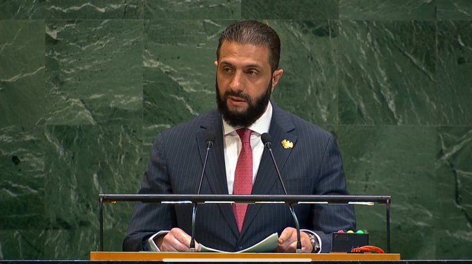 وقال الشرع أمام الاجتماع السنوي للجمعية الذي يضم قادة العالم :”سوريا تستعيد مكانها الصحيح بين دول العالم”.