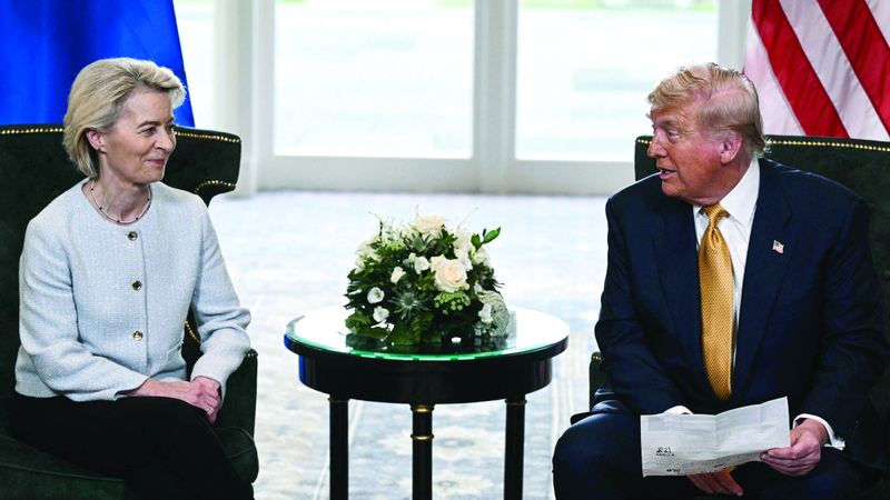 أما المشهد الذي ظهرت فيه الرئيسة الحالية للمفوضية الأوروبية، أورسولا فون دير لاين، وهي ترفع إبهامها بتكلف – إلى جانب ترامب المتبسم بسخرية بعد الموافقة على رسوم بنسبة 15% – فهو مشهد مؤلم ويُعبّر عن حجم التراجع في علاقة كان يفترض أن تقوم على الندية والاحترام.