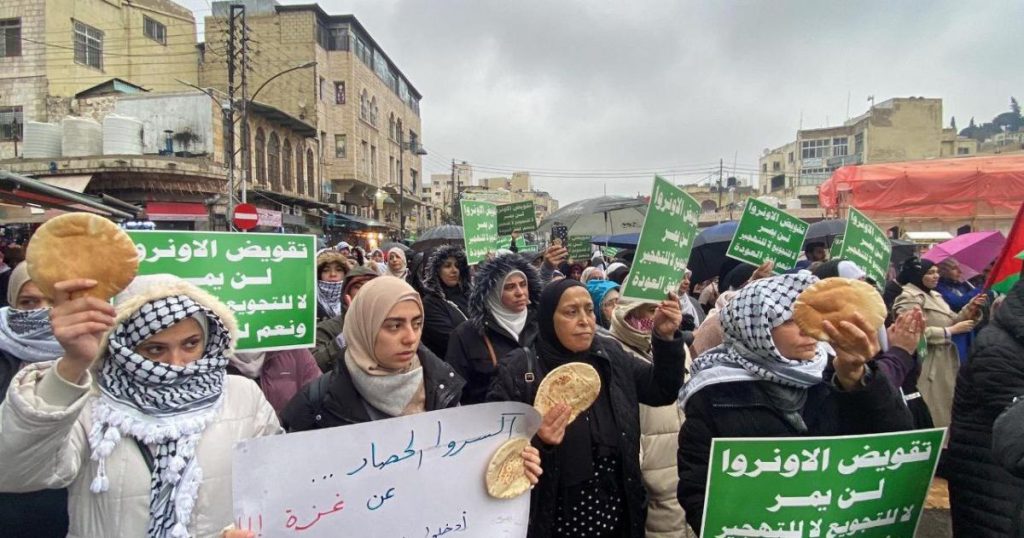 ورفع المشاركون في مسيرة الأردن لافتات كتب عليها: “تقويض الأونروا لن يمر: لا للتجويع، لا للتهجير ونعم لحق العودة”، وفق مراسل الأناضول.