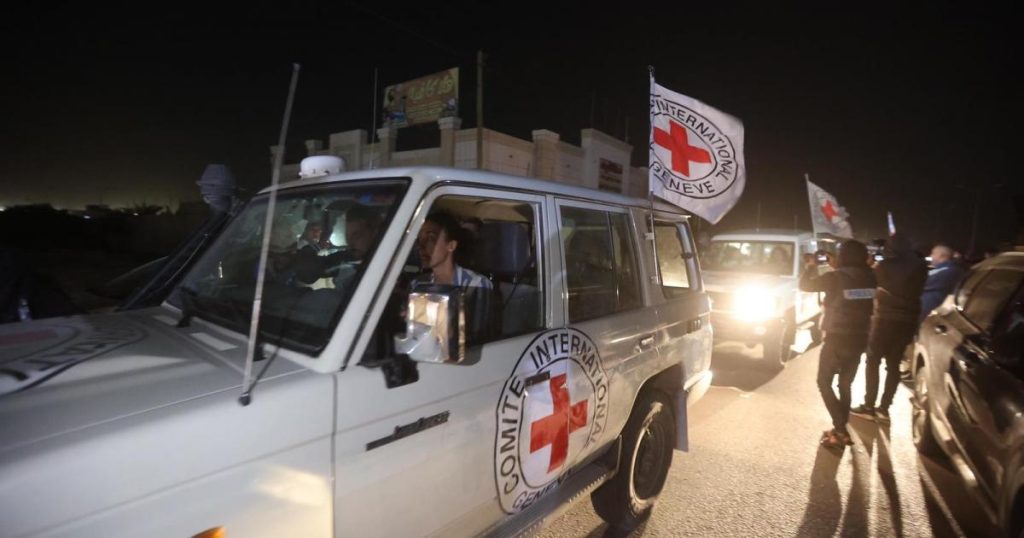 ونشرت مقاطع فيديو تظهر عناصر كتائب القسام وسرايا القدس وهما يسلمان الرهائن الإسرائيليين الى منظمة الصليب الأحمر في قطاع غزة ، وسط حضور لافت للجماهير الفلسطينية.