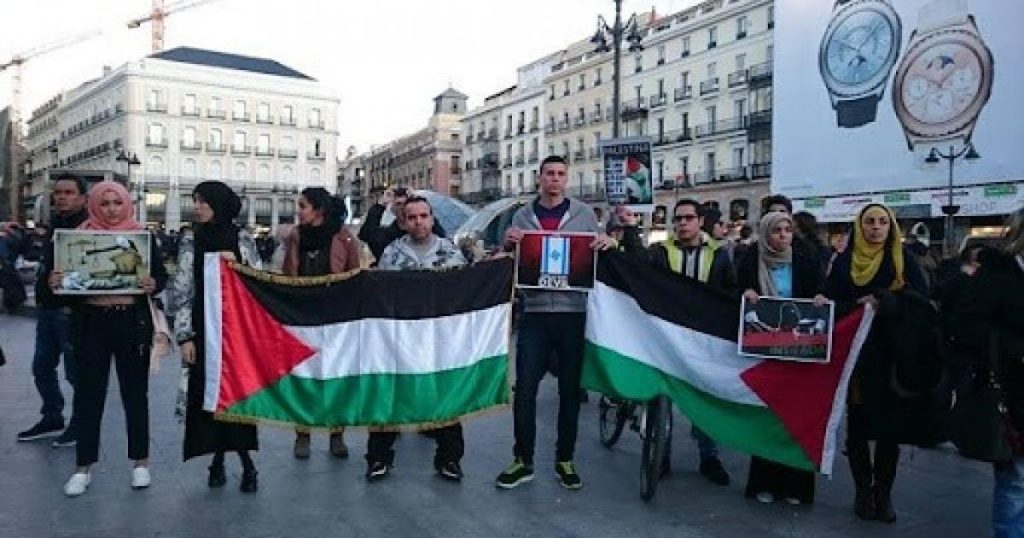 وحمل المشاركون أعلام فلسطين ولافتات كتب عليها عبارات من قبيل “الحرية لفلسطين”، و”كرامة الإنسان مصونة”، و”أوقفوا الحرب والاحتلال”، و”لا لتزويد إسرائيل بالأسلحة”.