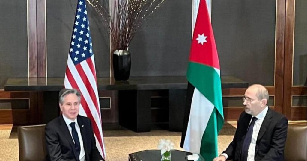 جاء ذلك خلال لقاء الصفدي في العاصمة عمان مع نظيره الأمريكي أنتوني بلينكن، الذي وصل إلى المملكة قادما من اليونان، في ثالث محطة ضمن جولة استهلها من تركيا، بحسب تغريدة لوزارة الخارجية الأردنية.