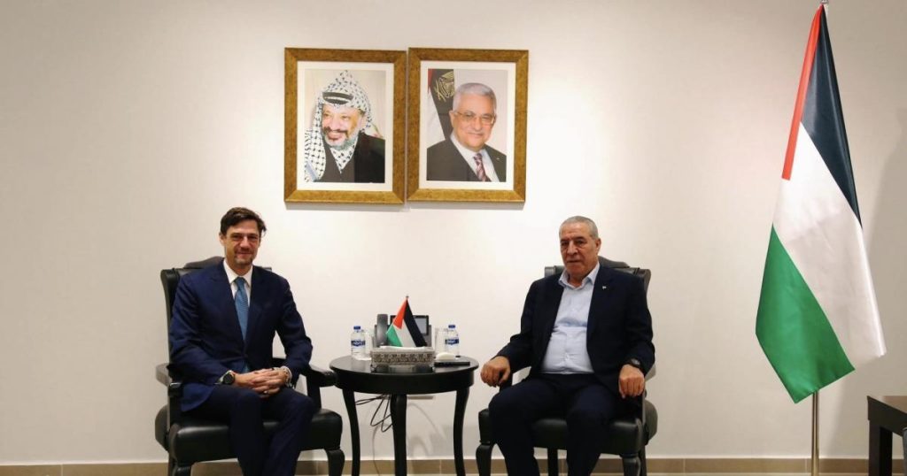 بحث أمين سر اللجنة التنفيذية لمنظمة التحرير حسين الشيخ ، اليوم الأربعاء 14 فبراير 2024، مع ممثل الاتحاد الأوروبي ألكساندر ستوتزمان، آخر المستجدات الفلسطينية، والإقليمية، والدولية.