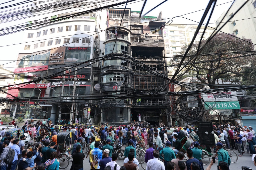 واندلع الحريق مساء الخميس في مطعم شعبي يقع أسفل مبنى من سبعة طوابق يضم مطاعم أخرى في حيّ بايلي رود الراقي في العاصمة دكا.