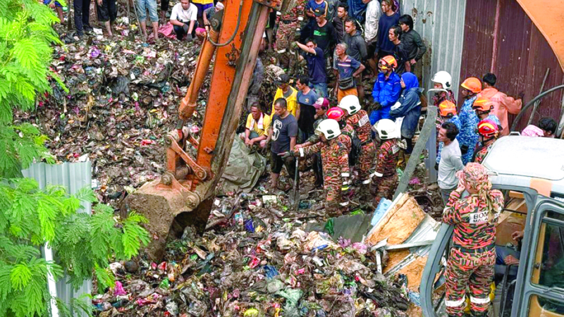 وأظهرت صور رسمية فرق الإنقاذ وهي تواصل عمليات البحث عن ناجين تحت الأنقاض، بموقع الانهيار الأرضي في كامبونغ شندراكاسيه بمنطقة كولومبونغ، التابعة لولاية «صباح» شرق البلاد.