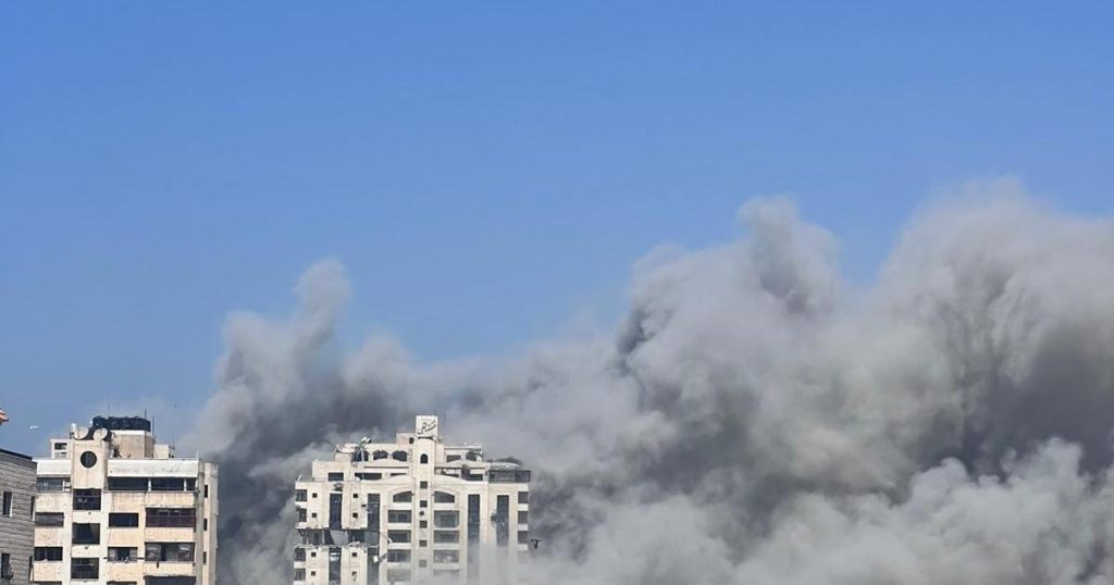 وأكدت مصادر محلية، أن غارة جوية إسرائيلية تقصف برجا سكنيا “مشتهى” في منطقة أنصار غربي مدينة غزة بـ3 صواريخ، وذلك عقب تهديده من قبل وزير الجيش الإسرائيلي قبل أقل من ساعة على قصفه.