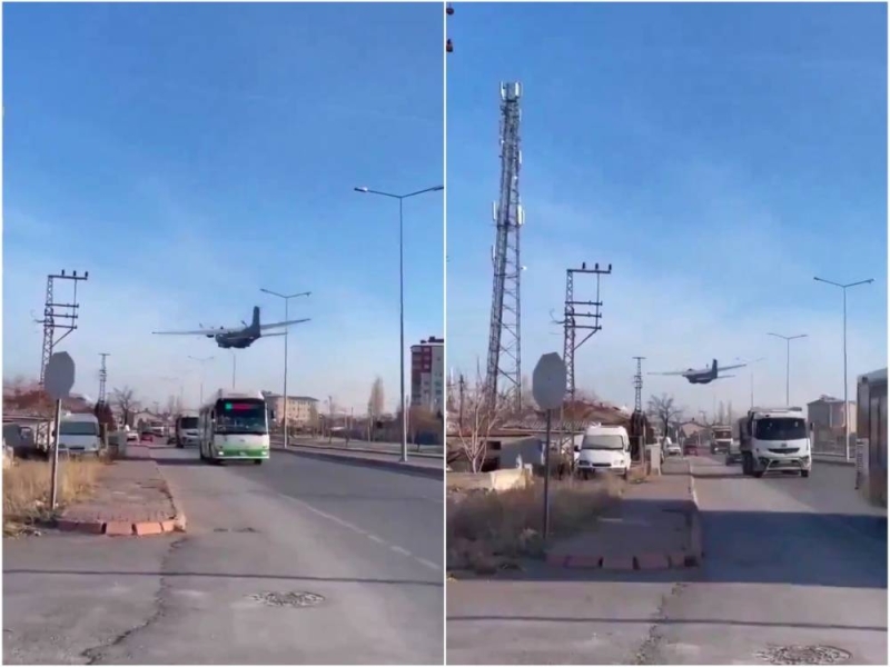 وثق مقطع فيديو متداول طائرة عسكرية تركية لحظة هبوطها اضطراريا وسط شارع مكتظ بالسيارات في محافظة قيصري وسط البلاد.
