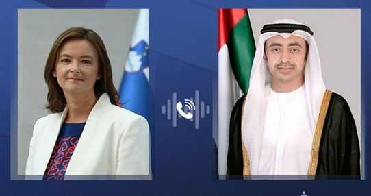 بحث سمو الشيخ عبدالله بن زايد آل نهيان وزير الخارجية خلال اتصال هاتفي مع معالي تانيا فاجون نائبة رئيس الوزراء وزيرة خارجية جمهورية سلوفينيا تطورات الأوضاع في منطقة الشرق الأوسط وتداعياتها لاسيما الإنسانية.
