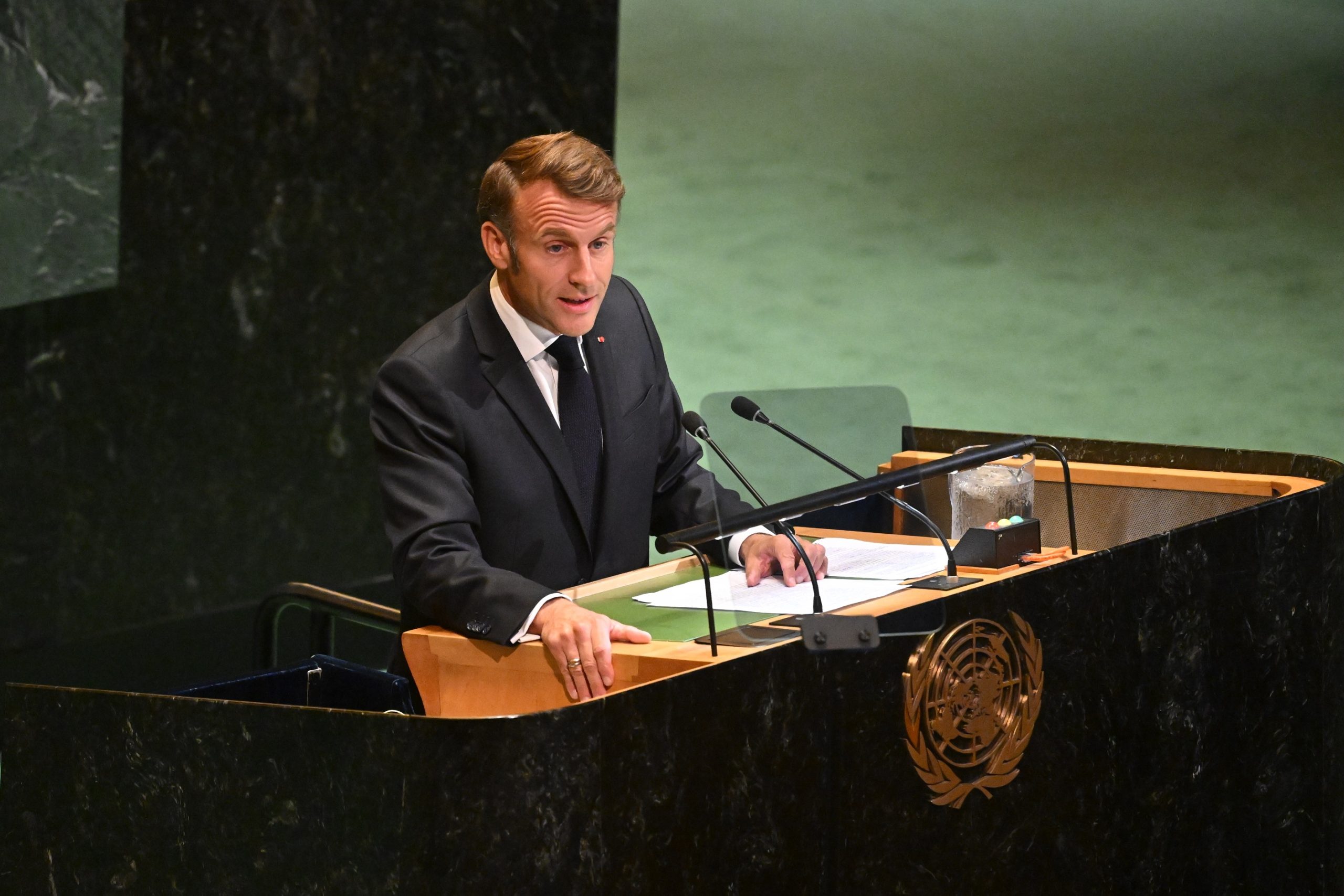 وفي مستهل خطابه بمؤتمر حل الدولتين في نيويورك برئاسة السعودية وفرنسا، أكد ماكرون من على منبر الأمم المتحدة أن “وقت السلام قد حان”.