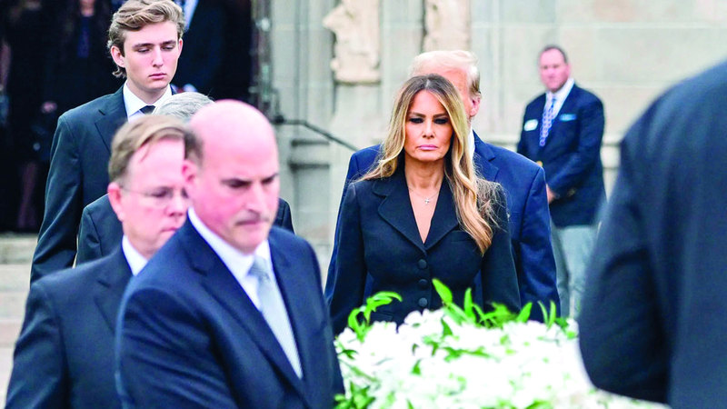 وعلى الرغم من حملته الانتخابية والمشكلات القانونية، لجأ دونالد ترامب إلى وسائل التواصل الاجتماعي في يوم الجنازة ليكتب «اليوم سيكون مخصصاً لجنازة امرأة عظيمة، هي (بابي)، والدة الحبيبة، ميلانيا وجدة بارون، ويا لها من امرأة».