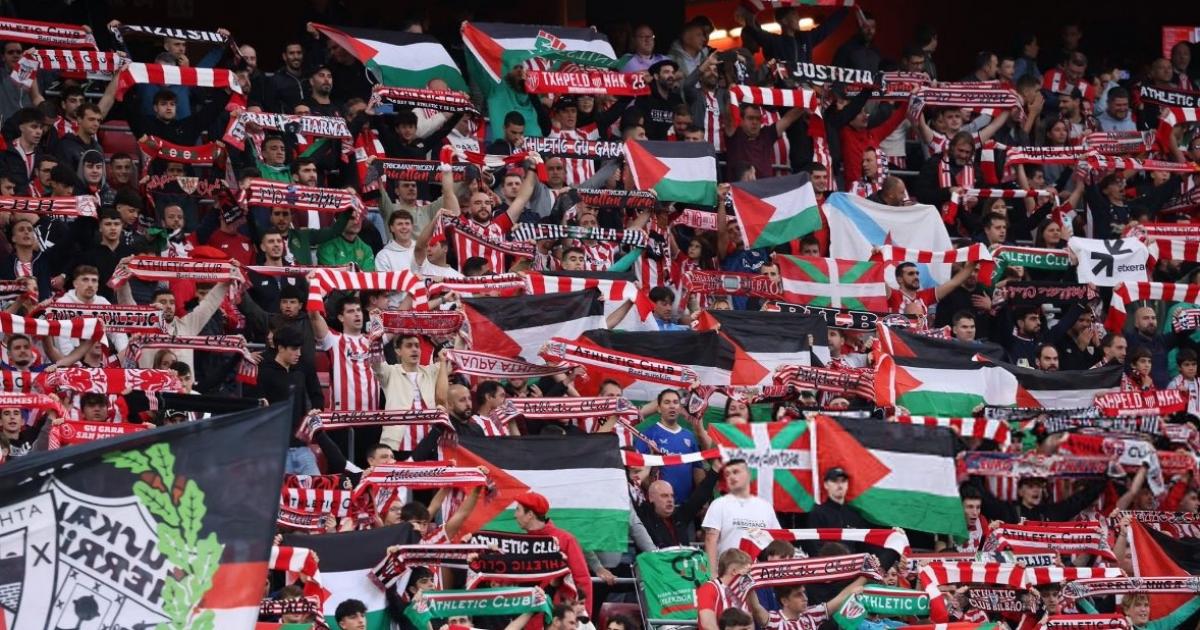 جماهير أتلتيك بيلباو توجه رسالة تضامن مع الشعب الفلسطيني والنادي يستضيف عدد من اللاجئين الفلسطينيين 🇵🇸👏