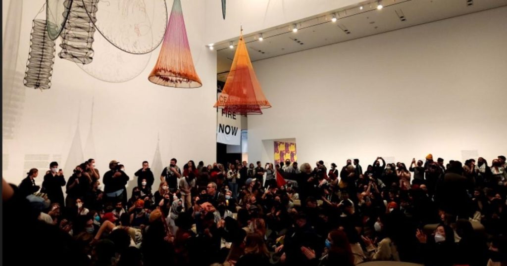 أقدم مئات النشطاء والمتضامنين مع الشعب الفلسطيني، على اقتحام مبنى “متحف الفن الحديث” (MoMA) في حي مانهاتن بولاية نيويورك، للمطالبة باتخاذ موقف ضد الابادة الجماعية في قطاع غزة ، وسياسة الفصل العنصري التي تمارسها إسرائيل بحق الشعب الفلسطيني.