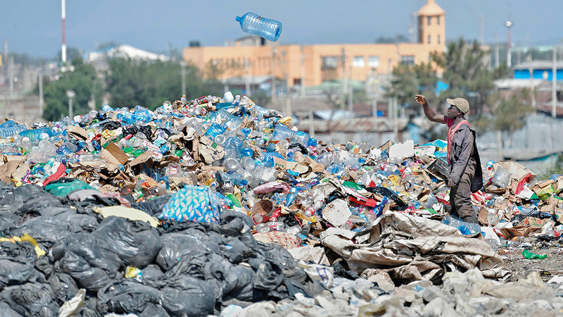 أحد جامعي النفايات يتولى فرز الزجاجات البلاستيكية في مكب نفايات داندورا في كينيا، حيث يبحث الناس في مكبّ النفايات عن مواد قابلة لإعادة الاستخدام وإعادة التدوير، يمكن إعادة بيعها في نيروبي. وفي أحدث معاهدة عالمية لحماية البيئة، تم أمس، افتتاح مؤتمر لمكافحة التلوث البلاستيكي في نيروبي، مع توقّع حدوث توترات في سعي الدول إلى ما يجب تضمينه في الاتفاقية. واتفقت نحو 175 دولة، العام الماضي، على إبرام معاهدة للأمم المتحدة بحلول عام 2024 لمكافحة النفايات البلاستيكية التي تلوّث المحيطات، ويوجد كثير منها في الغلاف الجوي، وبعضها يتسلل إلى أجسام الحيوانات والبشر.