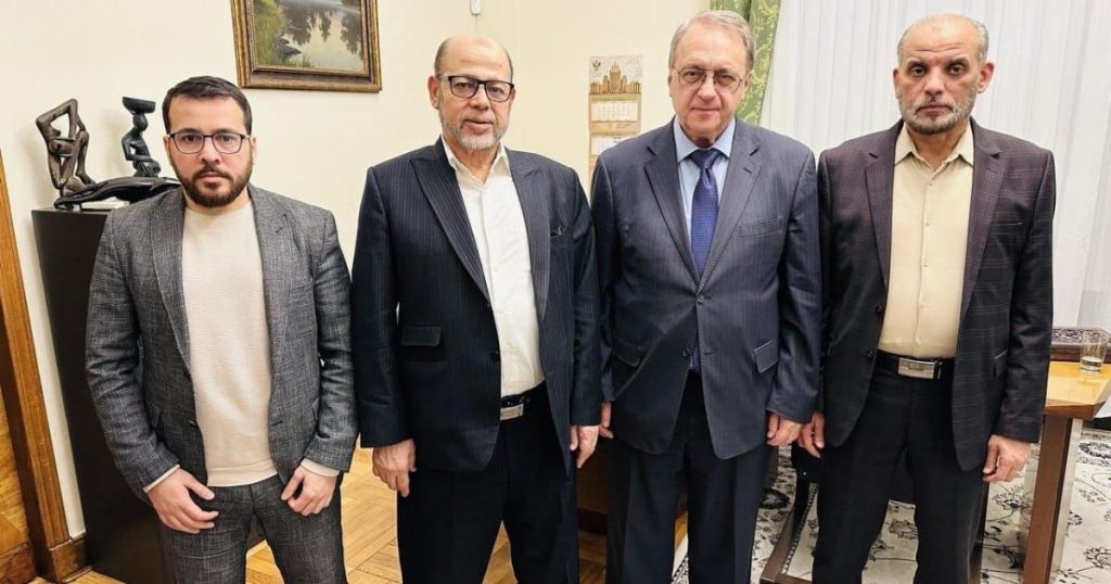 التقى وفد حركة حماس على هامش اللقاءات الفلسطينية المنعقدة في موسكو، المبعوث الخاص للرئيس الروسي إلى الشرق الأوسط وأفريقيا، نائب وزير الخارجية ميخائيل بوغدانوف، في مقر وزارة الخارجية الروسية مساء اليوم الجمعة.