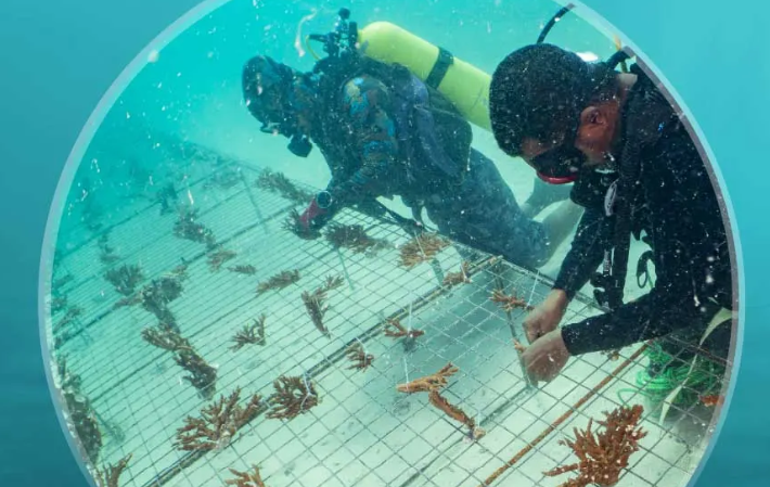 وتضمَّن نطاق مشروع إعادة تأهيل الشعاب المرجانية تطوير حضانات الشعاب المرجانية التي تساعد على التخفيف من التأثير السلبي للضغوط الطبيعية والبشرية على الشعاب المرجانية الناشئة عن التنمية الساحلية وتغيُّر المناخ، ويشمل ذلك التهديد المباشر لارتفاع درجات حرارة مياه البحر.