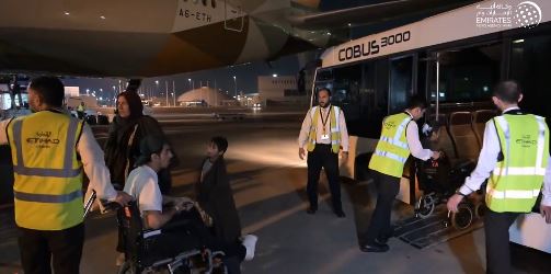 وصلت إلى الإمارات، فجر اليوم، الدفعة الـ 16 من الأطفال الفلسطينيين الجرحى ومرضى السرطان، والتي تضم 25 من الذين يحتاجون للعلاج والرعاية الطبية، بالإضافة إلى 51 مرافقاً من عائلاتهم.