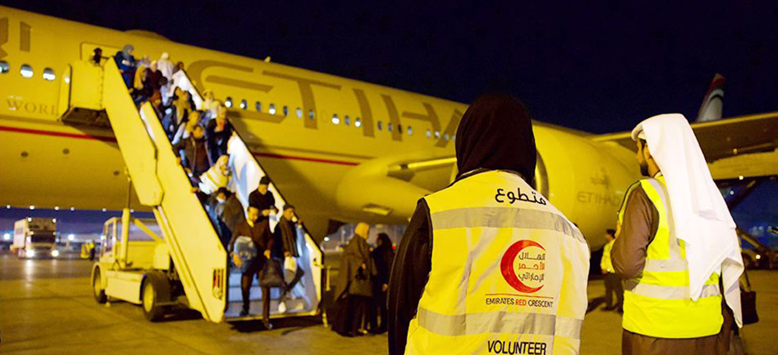 وحطّت الطائرة القادمة من مطار العريش في جمهورية مصر العربية في مطار أبوظبي وعلى متنها 77 ممن يحتاجون للرعاية الطبية إضافة إلى 43 مرافقاً من عائلاتهم.
