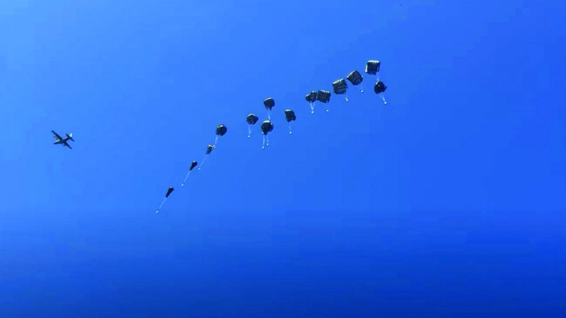 وتهدف هذه العمليات إلى إيصال المساعدات الإغاثية إلى المناطق التي يصعب الوصول إليها براً نتيجة الأوضاع الميدانية الراهنة، وتضم حمولات متنوعة من المواد الغذائية والإمدادات الإنسانية العاجلة.