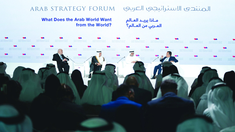 استضافت الجلسة الختامية لـ«المنتدى الاستراتيجي العربي» كلاً من الأمير تركي الفيصل بن عبدالعزيز آل سعود، رئيس مجلس إدارة «مركز الملك فيصل للبحوث والدراسات الإسلامية»، والمستشار الدبلوماسي لصاحب السمو رئيس الدولة الدكتور أنور قرقاش، ووزير الخارجية المصري السابق، نبيل فهمي، وأدار الجلسة الصحافي والإعلامي عماد الدين أديب.