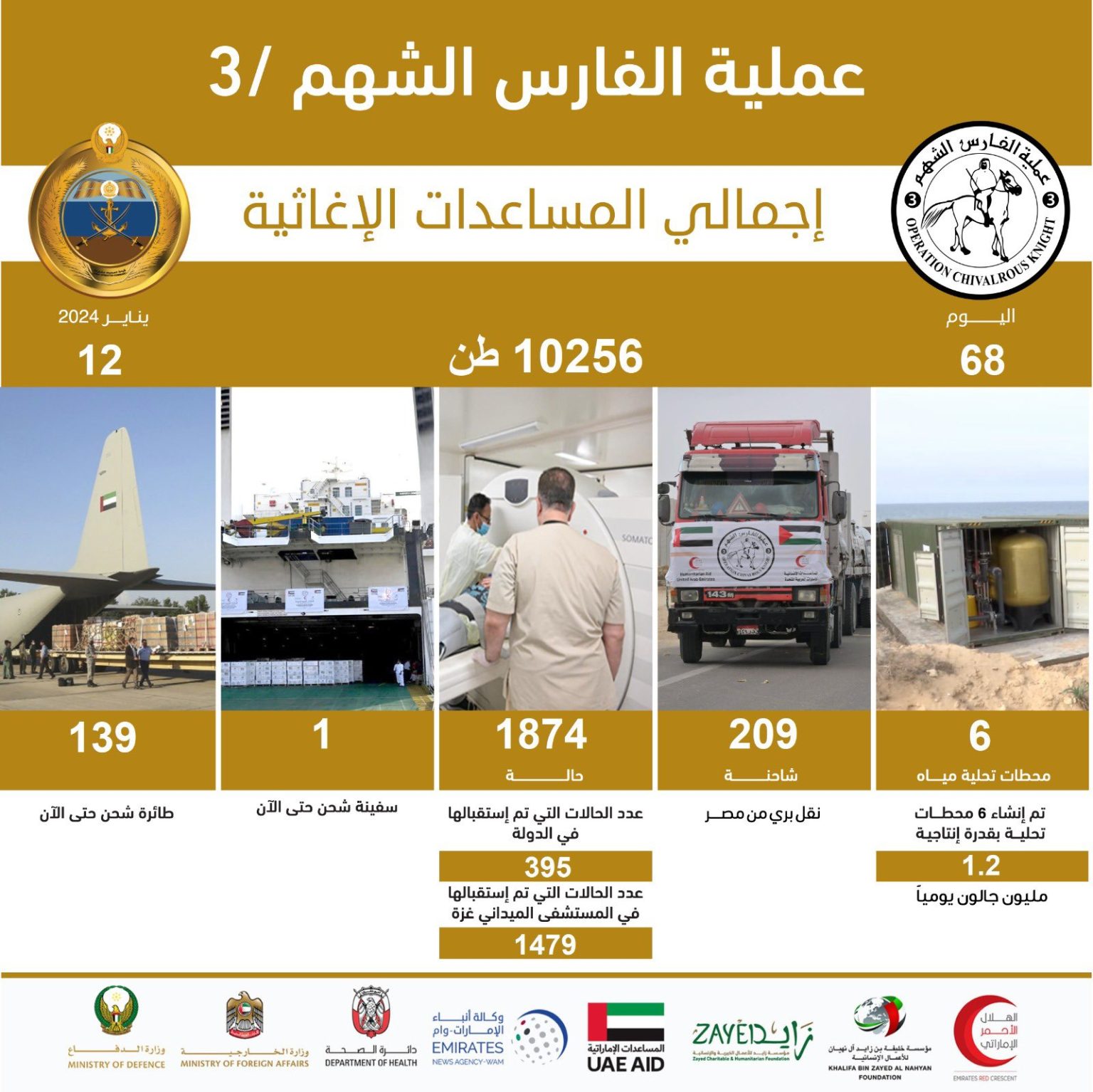 تنفيذاً لتوجيهات صاحب السمو الشيخ محمد بن زايد آل نهيان رئيس الدولة، حفظه الله، تواصل دولة الإمارات جهودها الإنسانية لدعم الأشقاء الفلسطينيين في قطاع غزة، في إطار عملية “الفارس الشهم 3”.