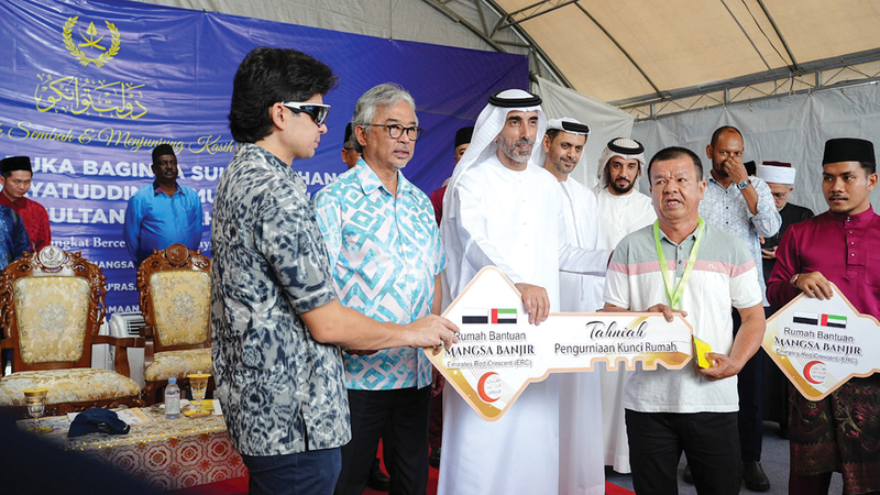 دشنت هيئة الهلال الأحمر الإماراتي المرحلة الأخيرة من مشروع بناء المنازل للمتضررين من الفيضانات في ولاية بهانج الماليزية، وذلك بتوجيهات كريمة من صاحب السمو الشيخ محمد بن زايد آل نهيان، رئيس الدولة، حفظه الله. وقد حظي المشروع بمتابعة حثيثة من سمو الشيخ حمدان بن زايد آل نهيان، ممثل الحاكم في منطقة الظفرة رئيس هيئة الهلال الأحمر الإماراتي، مما يؤكد على الأهمية التي توليها القيادة الرشيدة للعمل الإنساني.
