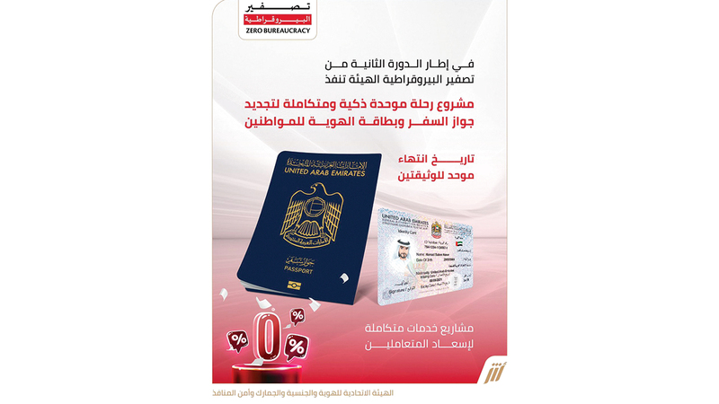 في إطار سعيها الدائم لتطوير الخدمات الحكومية وتبسيط الإجراءات، أعلنت الهيئة الاتحادية للهوية والجنسية والجمارك وأمن المنافذ عن إطلاق مشروع مبتكر يهدف إلى تسهيل عملية تجديد جواز السفر وبطاقة الهوية للمواطنين. هذا المشروع، الذي يندرج ضمن المرحلة الثانية من برنامج تصفير البيروقراطية، يمثل نقلة نوعية في تجربة المتعاملين، ويوفر لهم رحلة سلسة وذكية للتجديد، مع التركيز على الكفاءة وتقليل الوقت والجهد.