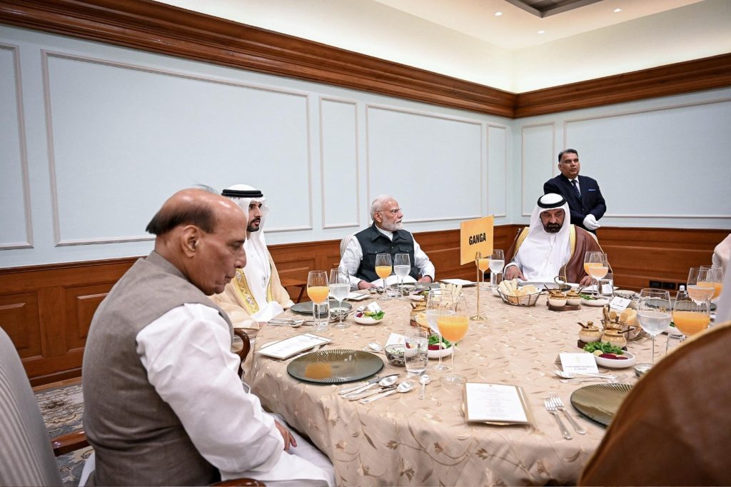 حضر سموّ الشيخ حمدان بن محمد بن راشد آل مكتوم، ولي عهد دبي، نائب رئيس مجلس الوزراء وزير الدفاع، مأدبة الغداء التي أقامها دولة ناريندرا مودي، رئيس وزراء جمهورية الهند، على شرف سموّه، وتعبيراً عن مدى التقدير الذي تحمله الهند لدولة الإمارات وقيادتها الرشيدة وشعبها الصديق، وما يربط الجانبين من علاقات تاريخية وروابط وثيقة تُعد نموذجاً يحتذى على صعيد التعاون الدولي المثمر.