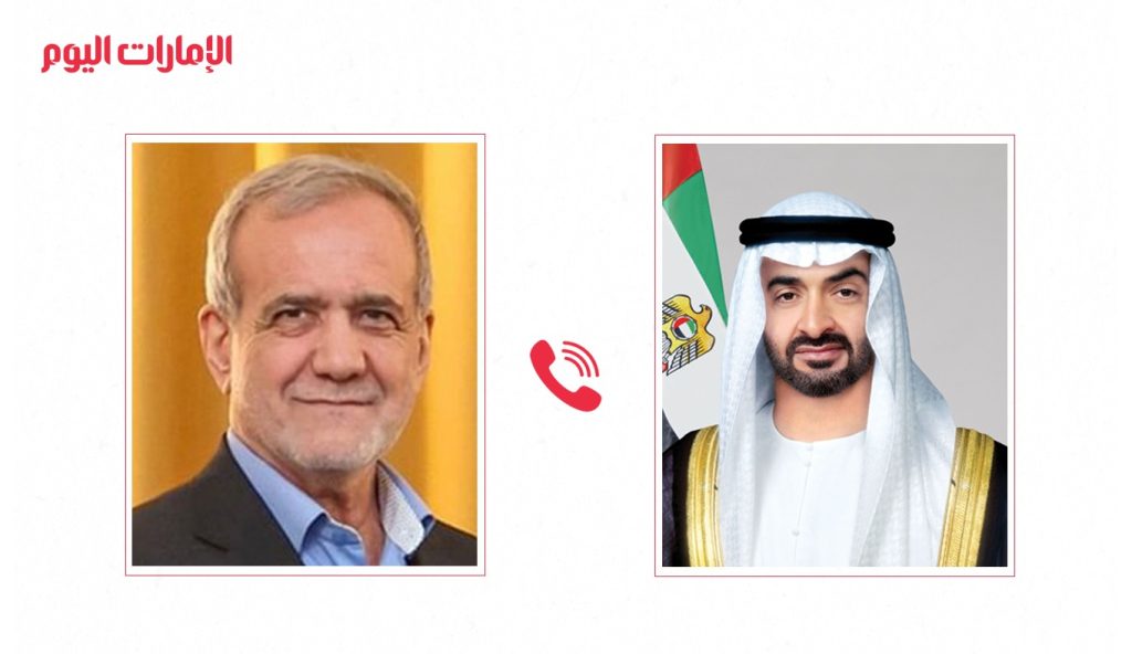 أجرى صاحب السمو الشيخ محمد بن زايد آل نهيان رئيس الدولة “حفظه الله” اليوم اتصالاً هاتفياً مع فخامة الدكتور مسعود بزشكيان رئيس الجمهورية الإسلامية الإيرانية، تناولا خلاله مستجدات الأوضاع في منطقة الشرق الأوسط وتداعياتها الخطيرة على الأمن والسلم الإقليميين. وتطرق الاتصال إلى الاستهداف العسكري الإسرائيلي للجمهورية الإسلامية الإيرانية حيث أعرب سموه عن تضامن دولة الإمارات مع الجمهورية الإسلامية الإيرانية وشعبها خلال هذه الظروف.