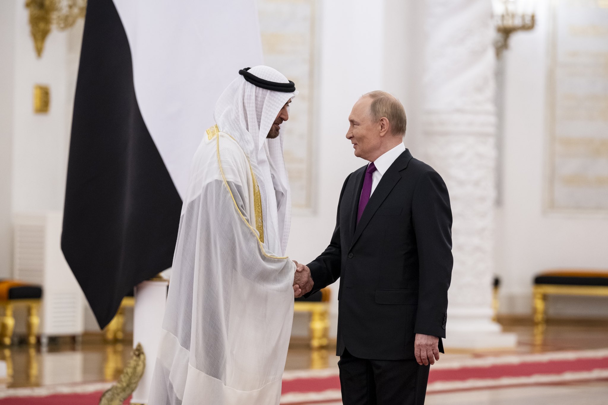 من جانبه رحب الرئيس فلاديمير بوتين بصاحب السمو رئيس الدولة في روسيا معرباً عن شكره وتقديره للجهود المتواصلة التي تقوم بها دولة الإمارات، وتسفر عن نجاح تبادل الأسرى بين روسيا وأوكرانيا.