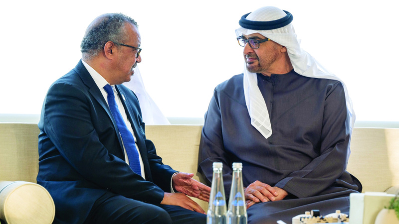 استقبل صاحب السمو الشيخ محمد بن زايد آل نهيان، رئيس الدولة، حفظه الله، مدير عام منظمة الصحة العالمية، الدكتور تيدروس أدهانوم غيبرييسوس، وبحث الجانبان ــ خلال اللقاء الذي جرى أمس في قصر البحر في أبوظبي ــ مختلف أوجه التعاون بين دولة الإمارات ومنظمة الصحة العالمية، وأهمية تعزيز التعاون الدولي في المجال الصحي خاصة في ظل الآثار الخطيرة للأمراض والأوبئة على التنمية والأمن والاستقرار في العالم.
